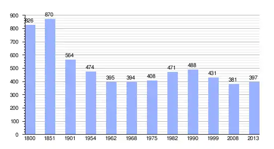 Los datos demográficos contemplados en este gráfico de la comuna de Bion[4] se han cogido de 1800 a 1999 de la página francesa EHESS/Cassini, y los demás datos de la página del INSEE.[5]
