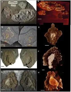 - ↑ a b c El Albani, Abderrazak; Bengtson, Stefan; Canfield, Donald E.; Bekker, Andrey; Macchiarelli, Roberto; Mazurier, Arnaud; Hammarlund, Emma U. (2010). «Large colonial organisms with coordinated growth in oxygenated environments 2.1 Gyr ago». Nature 466 (7302): 100-104. Bibcode:2010Natur.466..100A. PMID 20596019. doi:10.1038/nature09166.