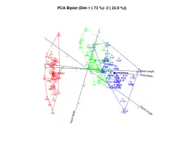 - ↑ a b c 'Gabriel, K. R. (1971). The biplot graphic display of matrices with application to principal component analysis. Biometrika, 58(3), 453-467.