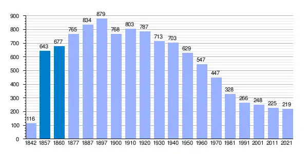 | Gráfica de evolución demográfica de La Bisbal de Montsant[3] entre 1842 y 2021 |