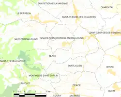 Blacé es una comuna francesa situada en el departamento de Ródano, de la región de Auvernia-Ródano-Alpes. Pertenece a la comunidad de aglomeración Villefranche-Beaujolais-Saône.