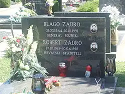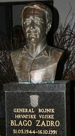 - ↑ «Polaganjem vijenaca, misom zadušnicom i komemorativnim skupom u Vukovaru je obilježeno 13 godina od pogibije general-bojnika Blage Zadre» (en croata). Hrvatska radiotelevizija. 16 de octubre de 2004. Archivado desde el original el 5 de marzo de 2016. Consultado el 12 de mayo de 2017.