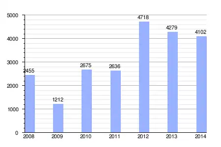 | Gráfica de evolución de la deuda viva del ayuntamiento entre 2008 y 2014 |