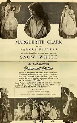 Snow White es una película de fantasía romántica y muda de 1916, fue dirigida por J. Searle Dawley. Fue adaptado por Winthrop Ames de su propia obra Snow White and the Seven Dwarfs, que a su vez fue adaptada de la versión de 1812 de los Hermanos Grimm. La película fue protagonizada por Marguerite Clark y Creighton Hale, Clark retomó su papel de Blancanieves mientras trabajaba en la obra.[1]