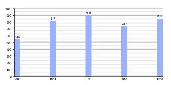 | Gráfica de evolución demográfica de Blanzac entre 1800 y 1968 |