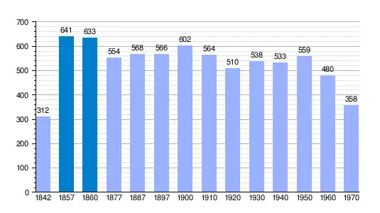| Gráfica de evolución demográfica de Blascoeles[4] entre 1842 y 1970 |