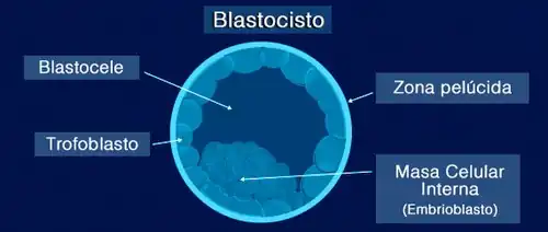 Los blastómeros se dividen veloz y repetidamente durante los primeros días de la gestación aunque el tamaño del embrión permanece constante (aumenta el número de células pero no su tamaño). Pasados cuatro días, el huevo fecundado tiene más de 32 blastómeros, recibiendo a partir de ese momento el nombre de mórula.[1] Posteriormente se produce la blastulación, que representa el inicio de la diferenciación celular de tal manera que un grupo de blastómeros se sitúan formando una envoltura externa denominada trofoblasto, que posteriormente dará origen a la placenta, mientras que otros se agrupan constituyendo la masa celular interna o embrioblasto que dará origen al embrión.