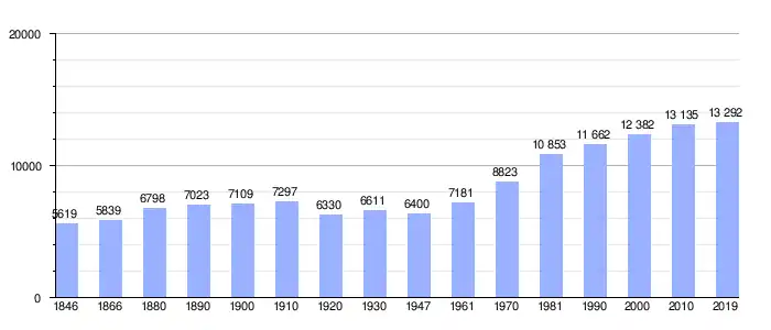 Todos los datos históricos relativos al actual municipio, el siguiente gráfico refleja su evolución demográfica, incluyendo municipios después de efectuada la fusión el 1 de enero de 1977.