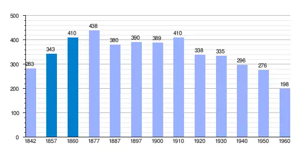 | Gráfica de evolución demográfica de Blocona[2] entre 1842 y 1960 |
