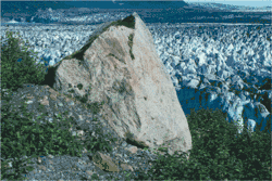 - los bloques erráticos caídos en icebergs fundidos en el océano pueden ser usados para rastrear los movimientos de los glaciares en las regiones de la Antártida y el Ártico en períodos anteriores al registro de retención. Estos pueden ser correlacionadas con la temperatura del océano y los niveles para entender mejor y calibrar los modelos climáticos globales.[1]