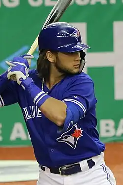 ![]() Bo Bichette al bate con los Toronto Blue Jays, el 25 de marzo de 2019 | |||