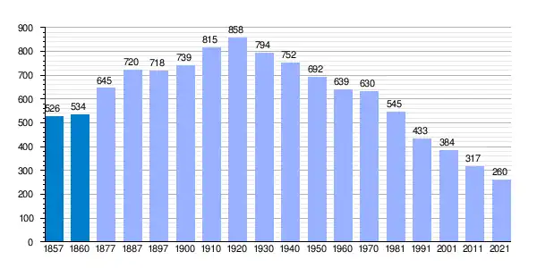 | Gráfica de evolución demográfica de Bobera[3] entre 1857 y 2021 |