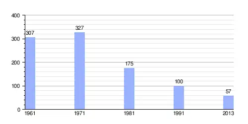 | Gráfica de evolución demográfica de Bobovica entre 1961 y 2013 |