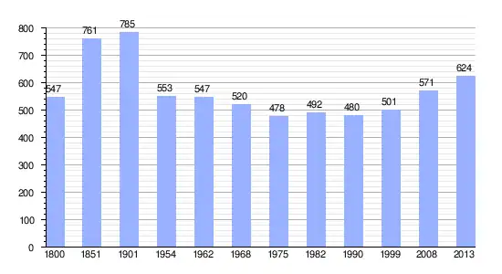Los datos demográficos contemplados en este gráfico de la comuna de Bocé[4] se han cogido de 1800 a 1999 de la página francesa EHESS/Cassini, y los demás datos de la página del INSEE.[5]