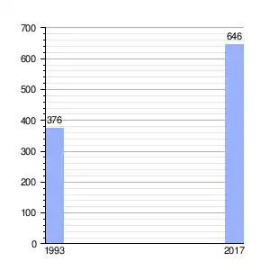 | Gráfica de evolución demográfica de Bocapán entre 1993 y 2017 |