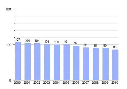 Población de derecho (2000-2010) según los censos de población del INE a 1 de enero de cada año.[8] |