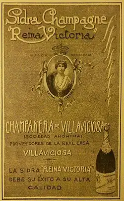 Esta compañía fue fundada en 1921 con la denominación social de "Champanera de Villaviciosa, S.A" en la parroquia de Castiello de la Marina (Villaviciosa) de ahí el nombre de la sociedad. En 1930 se traslada a Gijón, donde construye su nueva fábrica en el barrio de El Tragamón, parroquia de Cabueñes. Fue una empresa proveedora de la casa real española, con la marca sidra "Reina Victoria", en honor a Victoria Eugenia de Battenberg reina consorte de Alfonso XIII. El eslogan de esta sidra era: "La sidra Reina Victoria debe su éxito a su alta calidad".