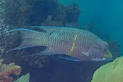 - ↑ a b c "Bodianus diplotaenia". En FishBase (Rainer Froese y Daniel Pauly, eds.). Consultada en agosto de 2011. N.p.: FishBase, 2011.