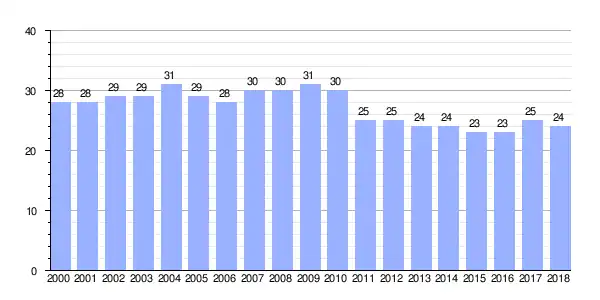 | Gráfica de evolución demográfica de Boente de Arriba entre 2000 y 2018 |