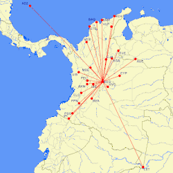 | Avianca Express | Barrancabermeja, Bucaramanga, Cúcuta, Ibagué, Ipiales, Neiva, Santa Marta, Pereira, Popayán, Villavicencio, Yopal |