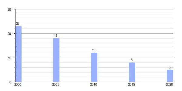 | Gráfica de evolución demográfica de Bogo (aldea) entre 2000 y 2020 |