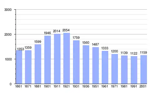 | Gráfica de evolución demográfica de Bogogno entre 1861 y 2001 |