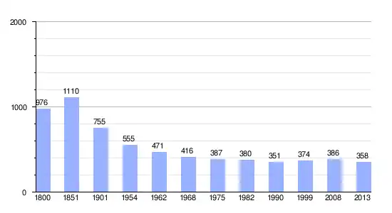 | Gráfica de evolución demográfica de Boissy-Maugis entre 1800 y 2013 |