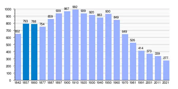 | Gráfica de evolución demográfica de Bolaños de Campos[3] entre 1842 y 2021 |