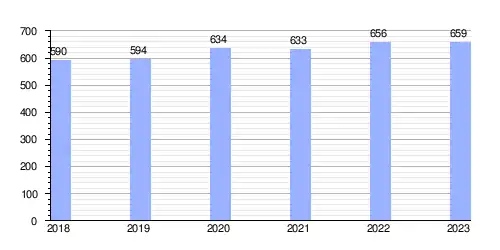 | Gráfica de evolución demográfica de Boldogkőújfalu entre 2018 y 2023 |