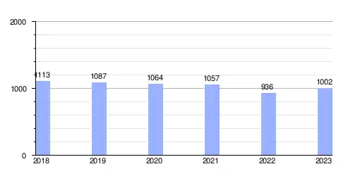 | Gráfica de evolución demográfica de Boldogkőváralja entre 2018 y 2023 |