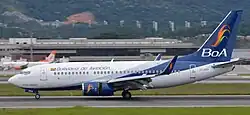 ![]() Boeing 737-800 de Boliviana de Aviación despegando del Aeropuerto Internacional de Guarulhos (2024) | |||||