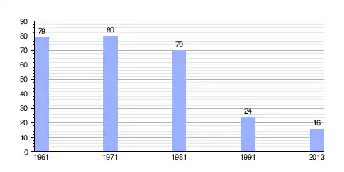 | Gráfica de evolución demográfica de Boljanovići entre 1961 y 2013 |