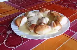 Bollos del ducado (en eslovaco: dukátové buchtičky; en checo: dukátové buchtičky) es un plato dulce checo y eslovaco que consiste en bollos con levadura cubiertos con crema tibia de vainilla. Los bollos también se pueden servir según una receta francesa más antigua con manjar blanco, una espuma de vino hecha principalmente de vino y huevos, y se pueden servir con fruta fresca.[1] Los bollos con manjar blanco son un plato tradicional centroeuropeo, su variante también se cocina en Baviera. Sin embargo, también se preparan platos similares en Inglaterra, Francia e Italia, donde una crema similar hecha de yemas de huevo, azúcar y vino dulce se llama zabaglione.[2] La sustitución del manjar blanco por la crema de vainilla se produjo en el pasado por la influencia de la cocina en los comedores escolares y fábricas, donde el manjar blanco no cumplía con los estándares aplicables y fue sustituido por la crema de budín con leche.[1][3]