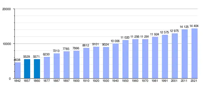Gráfica de evolución demográfica de Bollullos Par del Condado[3]​ entre 1842 y 2021