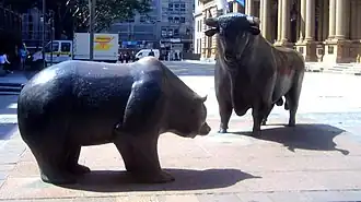 Por su cúpula de 43 metros de altura la bolsa de Fráncfort se llama también la catedral de los capitalistas. Delante del edificio construido entre 1874 y 49 se encuentra el monumento de la bolsa: el toro (tendencia alcista) y el oso (tendencia bajista), animales utilizados por su forma de atacar.