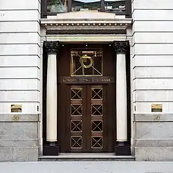 - ↑ «London Metal Exchange: Offices». www.lme.com. Archivado desde el original el 11 de octubre de 2016. Consultado el 22 de marzo de 2016.