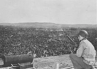![]() Soldado estadounidense custodia prisioneros alemanes en Remagen | ||||