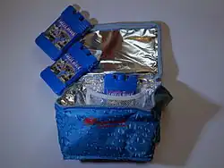 - Esta obra contiene una traducción parcial derivada de «Thermal bag» de Wikipedia en inglés, publicada por sus editores bajo la Licencia de documentación libre de GNU y la Licencia Creative Commons Atribución-CompartirIgual 4.0 Internacional.