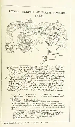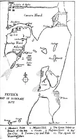 - ↑ Los portugueses que se encontraban en la India eran muy conscientes del potencial de Bombay y su puerto, y son muy celosos de cualquier infracción de los derechos que habían sido concedidos por la Corona, que contó con más de un siglo