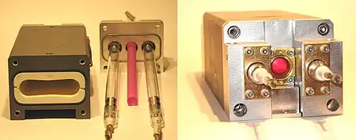 - ↑ Dishington, R. H.; Hook, W. R.; Hilberg, R. P. (1974). «Flashlamp discharge and laser efficiency». Applied Optics 13 (10): 2300-2312. Bibcode:1974ApOpt..13.2300D. PMID 20134680. doi:10.1364/AO.13.002300.