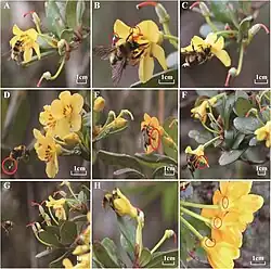 ![]() Proceso de polinización de Rhododendron longipedicellatum por Bombus braccatus. | ||