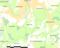 Bondeval es una población y comuna francesa, en la región de Franco Condado, departamento de Doubs, en el distrito de Montbéliard y cantón de Hérimoncourt.