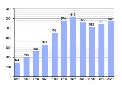 En 2020 registró una población de 569 personas, lo que corresponde al 3.26 % de la población municipal.[1][7] De los cuales 257 son hombres y 312 son mujeres.[1][7]