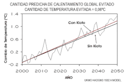 Sin embargo, los críticos del sistema de venta de bonos o permisos de emisión, argumentan que la implementación de estos mecanismos tendientes a reducir las emisiones de CO2 no tendrá el efecto deseado de reducir la concentración de CO2 en la atmósfera, como tampoco de reducir o retardar la subida de la temperatura. Según el estudio de Wigley, 1999, la implantación del Tratado de Kioto cumplido por todos los países del mundo, incluido los Estados Unidos, causará una reducción de 28 partes por millón (ppm) para 2050, o reducirá la temperatura predicha para ese año en 0,06 °C o, si no, retrasará la fecha en que debería cumplirse el aumento dicho en 16 años.