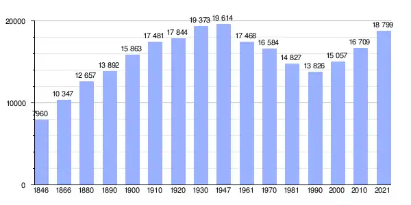 | Gráfica de evolución demográfica de Boom entre 1846 y 2021 |