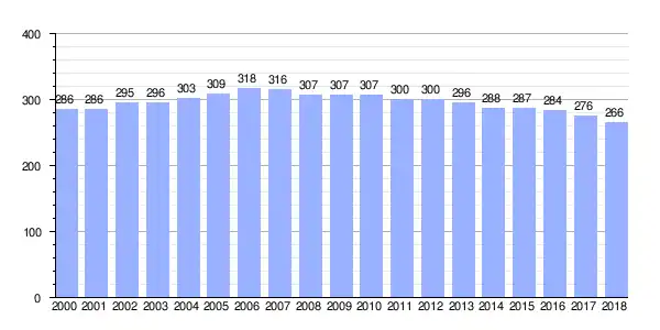 | Gráfica de evolución demográfica de Boqueijón entre 2000 y 2018 |