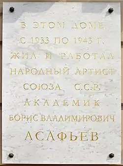 Borís Vladimirovich Asafiev (en ruso: Борис Владимирович Асафьев; San Petersburgo, 29 de julio de 1884-Moscú, 27 de enero de 1949) fue un compositor, escritor, musicólogo y crítico musical ruso y soviético y uno de los fundadores de la musicología soviética.[1]