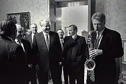 Borís Nikoláievich Yeltsin (en ruso: Бори́с Никола́евич Е́льцин, ⓘ; Butká, óblast de los Urales, actual óblast de Sverdlovsk, Unión Soviética; 1 de febrero de 1931-Moscú, Rusia; 23 de abril de 2007) fue un político ruso, que ejerció como primer presidente de Rusia entre 1991 y 1999.[1] También ocupó paralelamente el cargo de presidente del Gobierno de 1991 a 1992, y fue el penúltimo en ocupar el cargo de presidente del Sóviet Supremo de la RSFS de Rusia de 1990 a 1991.