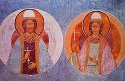![]() Santos Borís y Gleb, fresco por Dionisio, 1502–1503. | ||