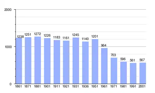 | Gráfica de evolución demográfica de Bordolano entre 1861 y 2001 |
